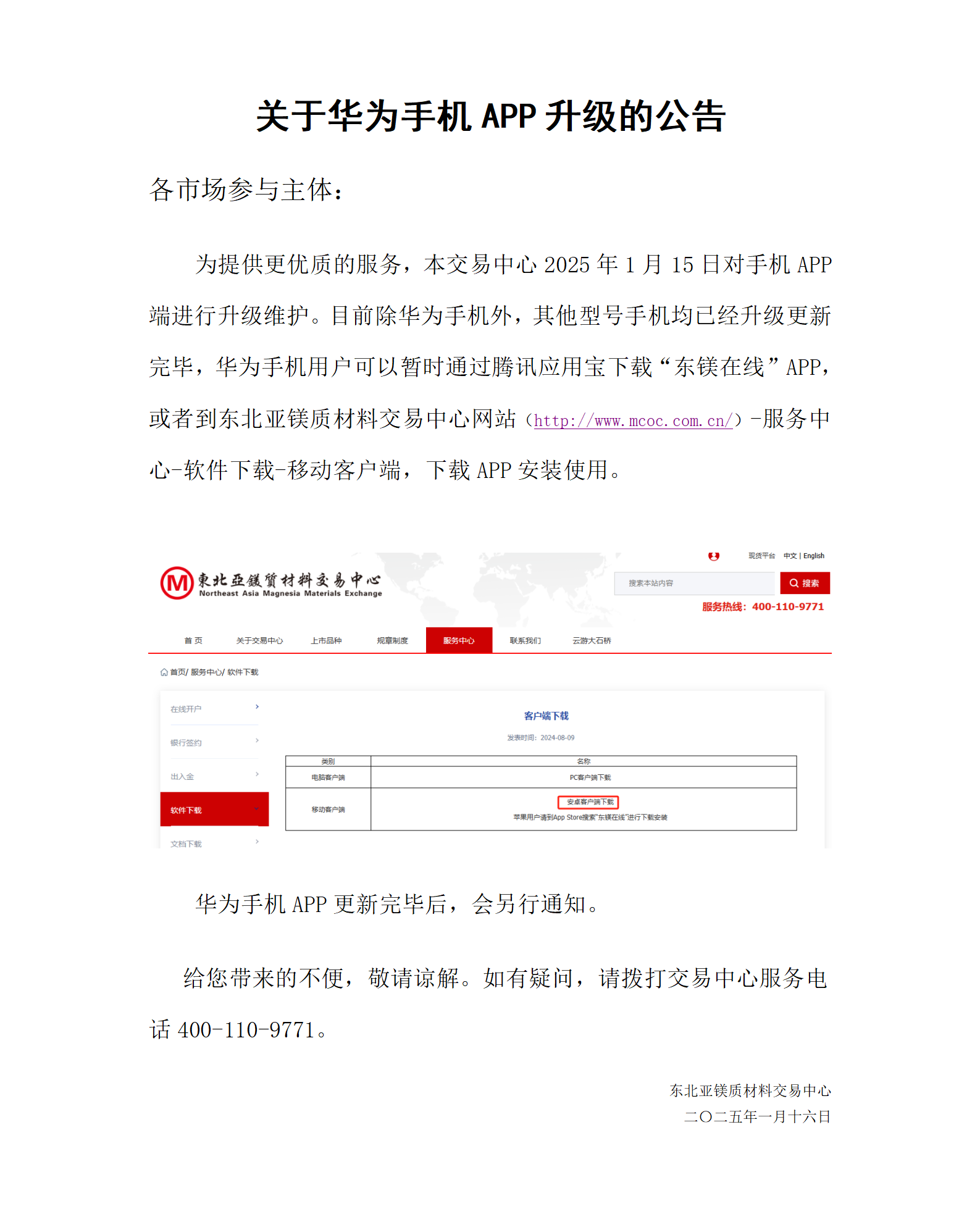 關(guān)于華為手機app升級的公告
